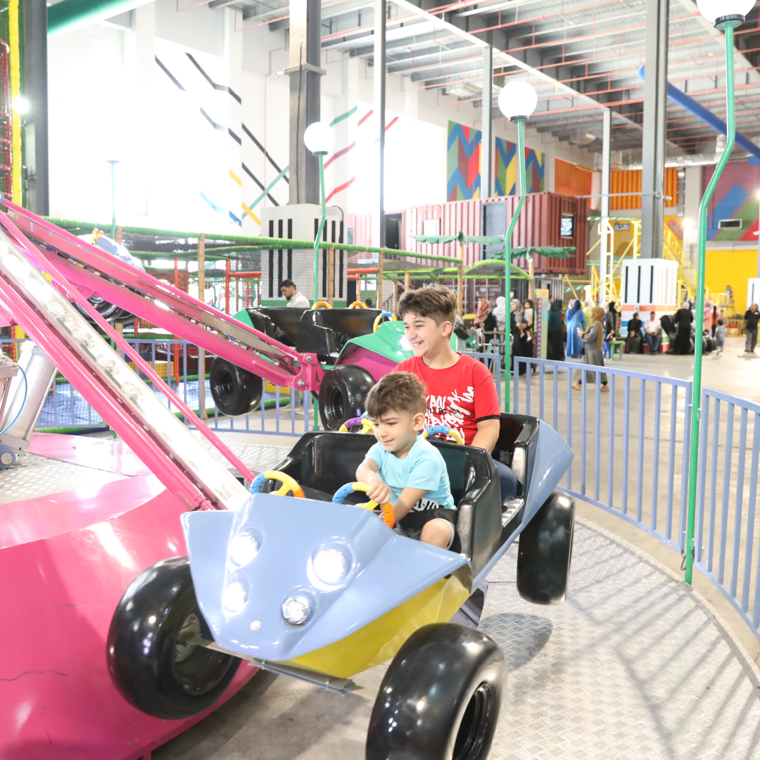 Let the kids soar with excitement on our flying cars ride! This fun indoor attraction lets them glide through the air, offering a thrilling experience that’s perfect for young adventurers.